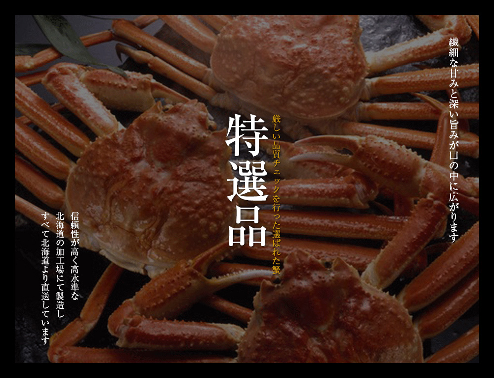■内容量:ズワイガニ姿 約600g×2尾 ■原産地:ロシア ■加工地:北海道 ■賞味期限:商品が到着後、冷凍(-18℃以下)で約30日。解凍後はお早めにお召し上がり下さい。■配送方法:冷凍