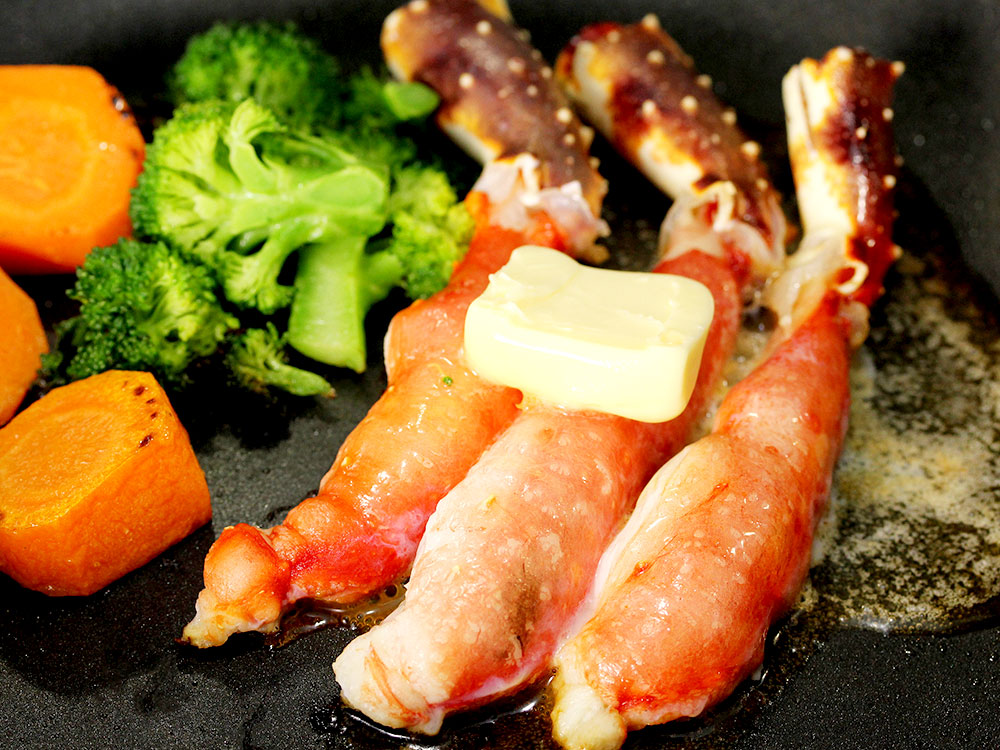 獲れたての鮮度を保ったまま急速凍結した生タラバガニ。ぷりっとした繊維質の身から溢れるカニ本来の甘みはプロの料理人も納得の品質です。